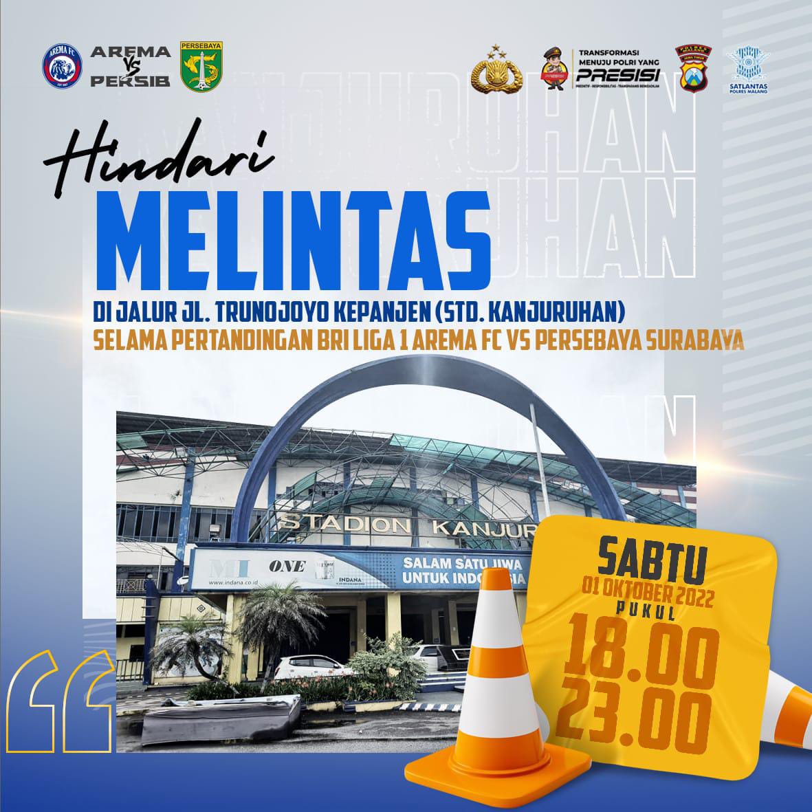 Perempatan Yonzipur 5 kearah Timur sampai perempatan Kedungpedaringan (Jl. Raya Trunojoyo/depan Stadion Kanjuruhan) akan ditutup untuk kendaraan besar seperti Truk muatan dan sebagainya, dimulai pada pukul 18.00 WIB hingga selesai pertandingan sekitar pukul 23.00 WIB.