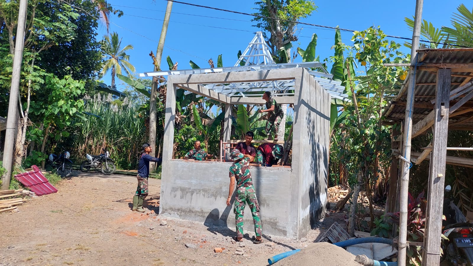 ”Kami sudah tidak sabar bangunan Pos Kamling segera jadi. Untuk itu, karena ada waktu, dan kebanyakan warga juga nganggur, kenapa tidak lembur, sambil bercengkrama dengan pak Tentara,” tutur Gozal, warga setempat.