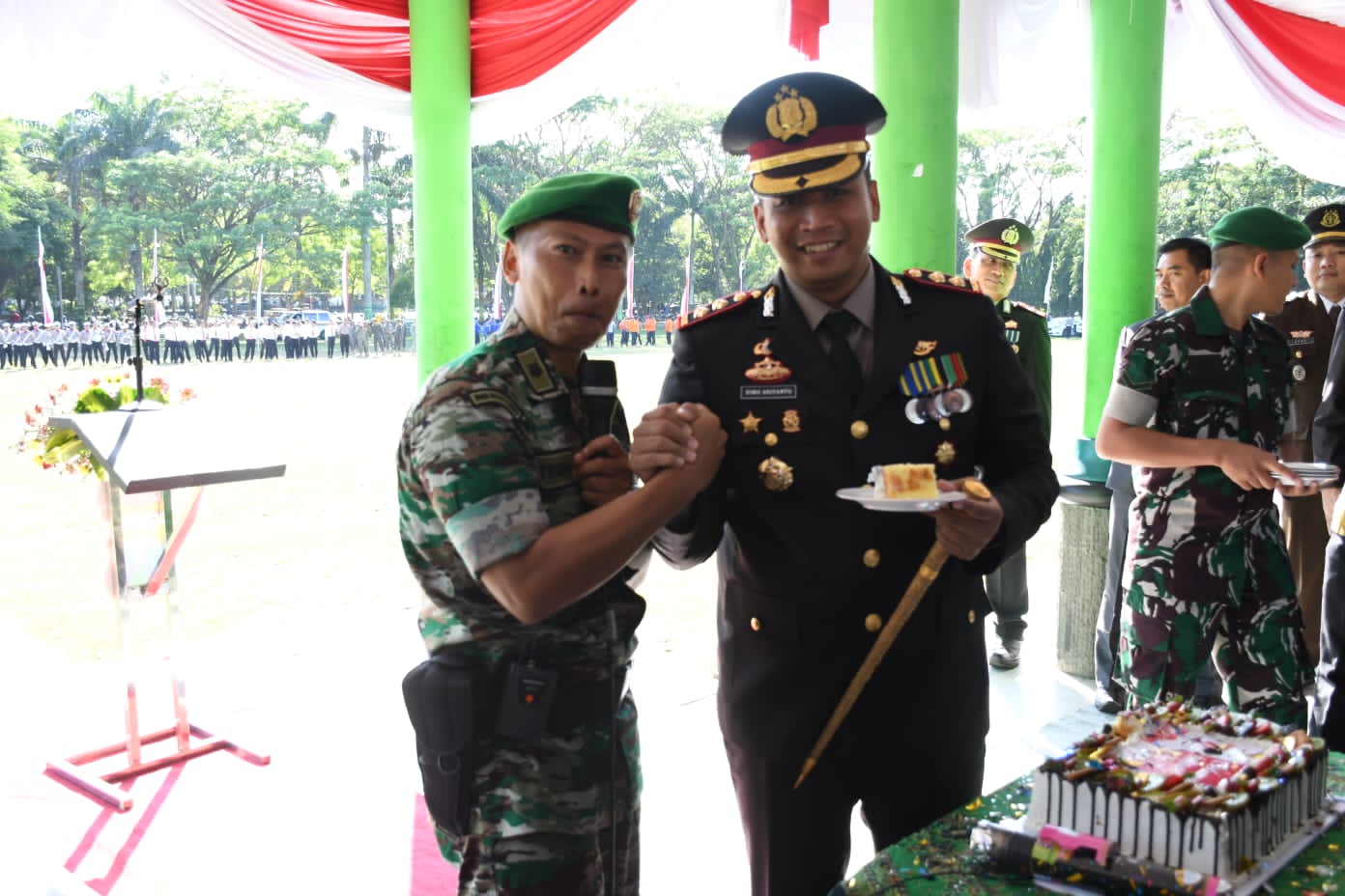 “Melalui momen peringatan ini kami sampaikan ucapan terima kasih atas Sinergi antara TNI-Polri yang sudah terbangun sampai saat ini, semoga Polri tetap jaya, Selamat Hari Bhayangkara ke-77.” tegas Mayor Inf Teguh Heri Wignyono, S.I.P.