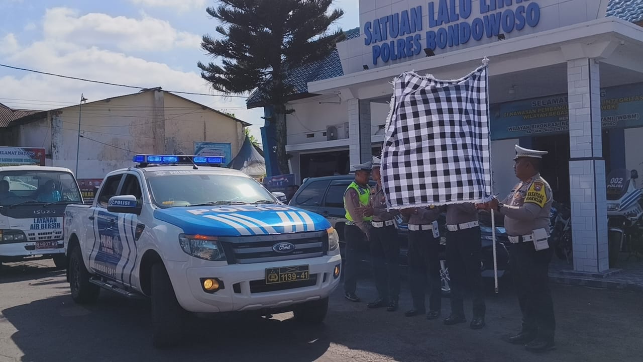 Kasatlantas Polres Bondowoso AKP Zainul Imam Syafi’i SH.MH melepas pemberangkatan personel Satlantas beserta BPBD yang akan menuju ke Klabang.