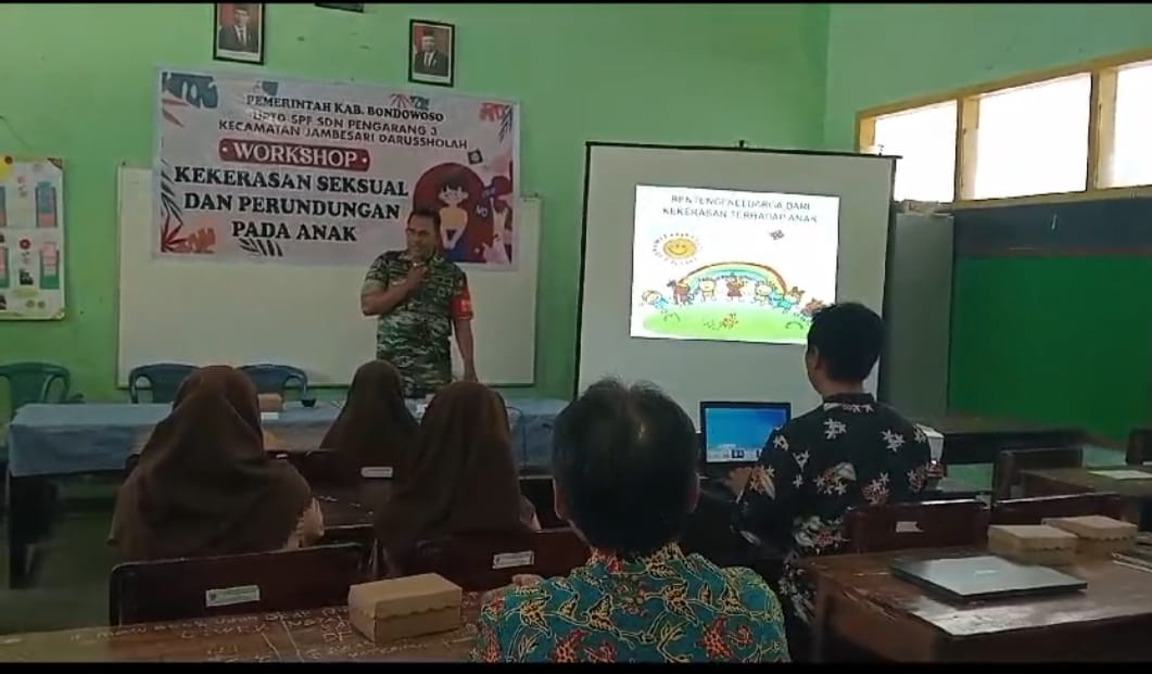 BONDOWOSO – KLIKTODAY.CO.ID Babinsa Posramil 0822/06 Jambesari, Kodim 0822/Bondowoso Sosialisasikan Program Anti Bullying Dan Kekerasan Seksual di SDN Penggarang 3 Jambesari Kabupaten Bondowoso, Jum’at (29/9/2023).