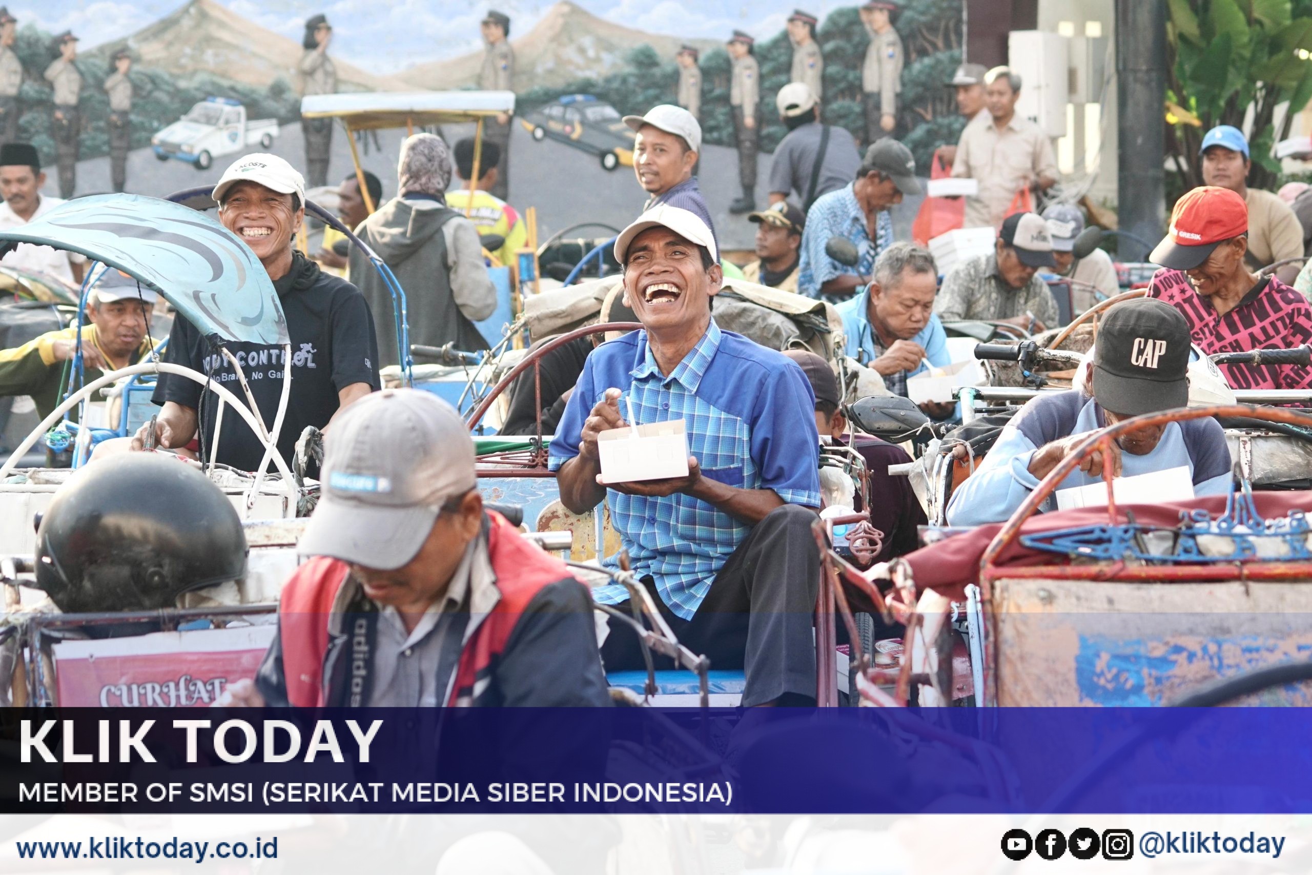 Ratusan abang becak pun serentak datang ke Mapolrestabes Surabaya memenuhi undangan sarapan bareng Kapolrestabes Surabaya yang hadir didampingi dengan Pejabat Utama (PJU) untuk langsung menyapa para abang becak.