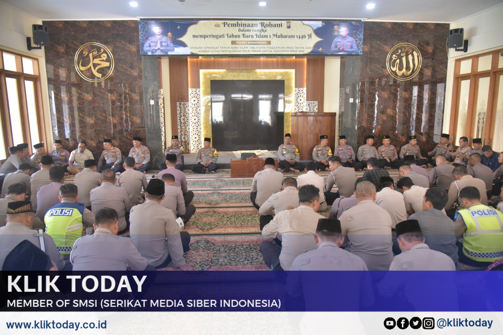Bondowoso, KLIKTODAY.CO.ID – Dalam rangka memperingati Tahun Baru Islam 1 Muharram 1446 H/2024 M, Polres Bondowoso menyelenggarakan kegiatan Pembinaan Rohani dan Mental (Binrohtal) pada hari Kamis, 25 Juli 2024, bertempat di Masjid Al Fajri Polres Bondowoso.