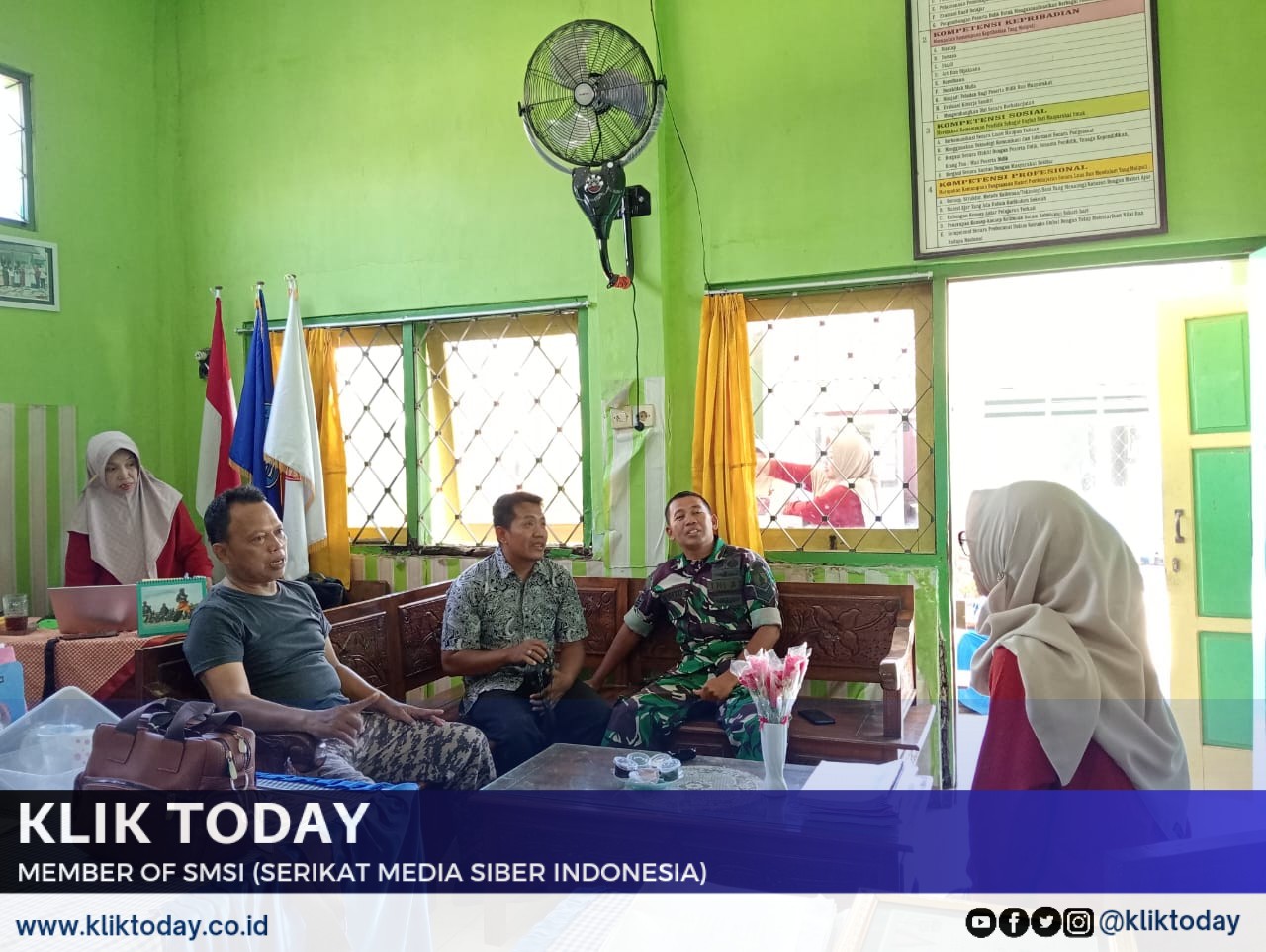 Dalam hal ini, Babinsa Serka Lugito melaksanakan komunikasi sosial dengan guru SD untuk membahas tentang Wawasan Kebangsaan.