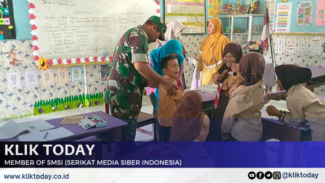 Bondowoso, KLIKTODAY.CO.ID – Dalam upaya meningkatkan kesehatan anak-anak di wilayahnya, Babinsa Pekauman, Serma Slamet Riyadi Koramil 0822/08 Grujugan Kodim 0822/Bondowoso, melakukan pendampingan kegiatan Bulan Imunisasi Anak Sekolah (BIAS) di SDN 1 Pekauman, Desa Pekauman, Kecamatan Grujugan. Kegiatan ini melibatkan petugas kesehatan dan bidan desa setempat, serta diikuti oleh siswa-siswi kelas 1, 2, 5, dan 6, Sabtu (2/11).