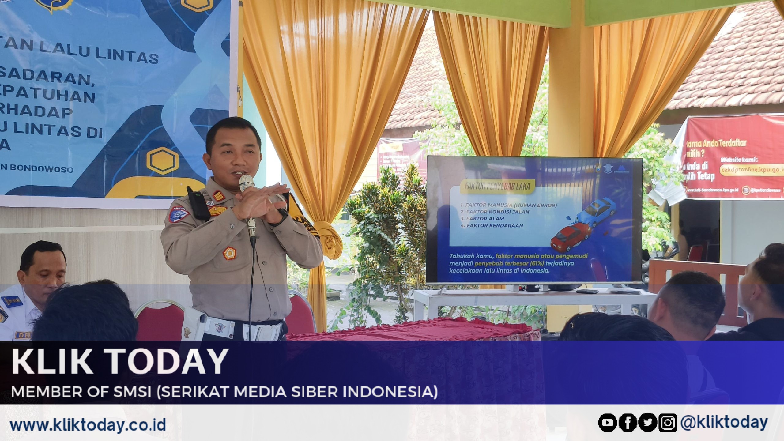 Bondowoso, KLIKTODAY.CO.ID — Polres Bondowoso dan Dinas Perhubungan (Dishub) terus memberikan sosialisasi dan penyuluhan ke masyarakat. Penyuluhan ini untuk membangun kesadaran berlalu lintas.
