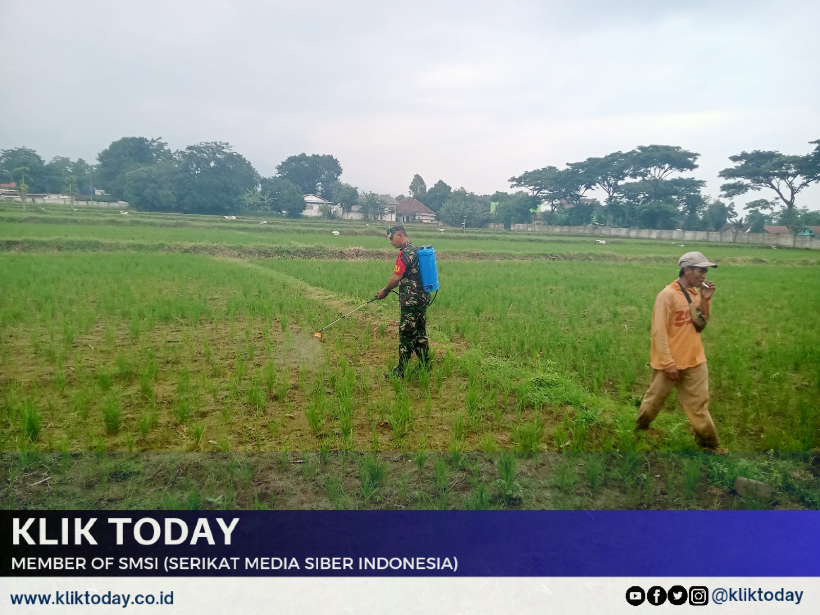 Bondowoso, Babinsa 0822 Grujugan Laksanakan Pendampingan Monitoring Pertumbuhan Padi dan Penyemprotan Serangga di Desa Binaan