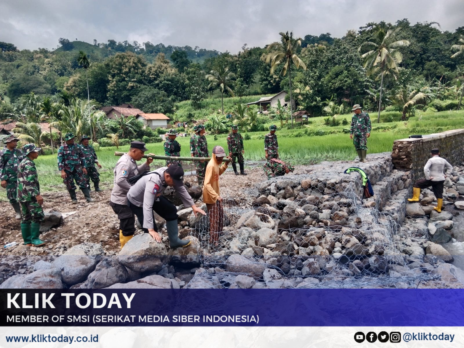 Bondowoso, KLIKTODAY.CO.ID — Bencana banjir bandang beberapa hari yang lalu di Desa Wonoboyo Kecamatan Klabang Kabupaten Bondowoso yang menerjang rumah warga dan menyisakan lumpur dan tumpukan kayu ranting yang berserakan, akibat banjir bandang yang melanda Desa Wonoboyo ini TNI POLRI melakukan kerja bakti sosial di Desa Wonoboyo.