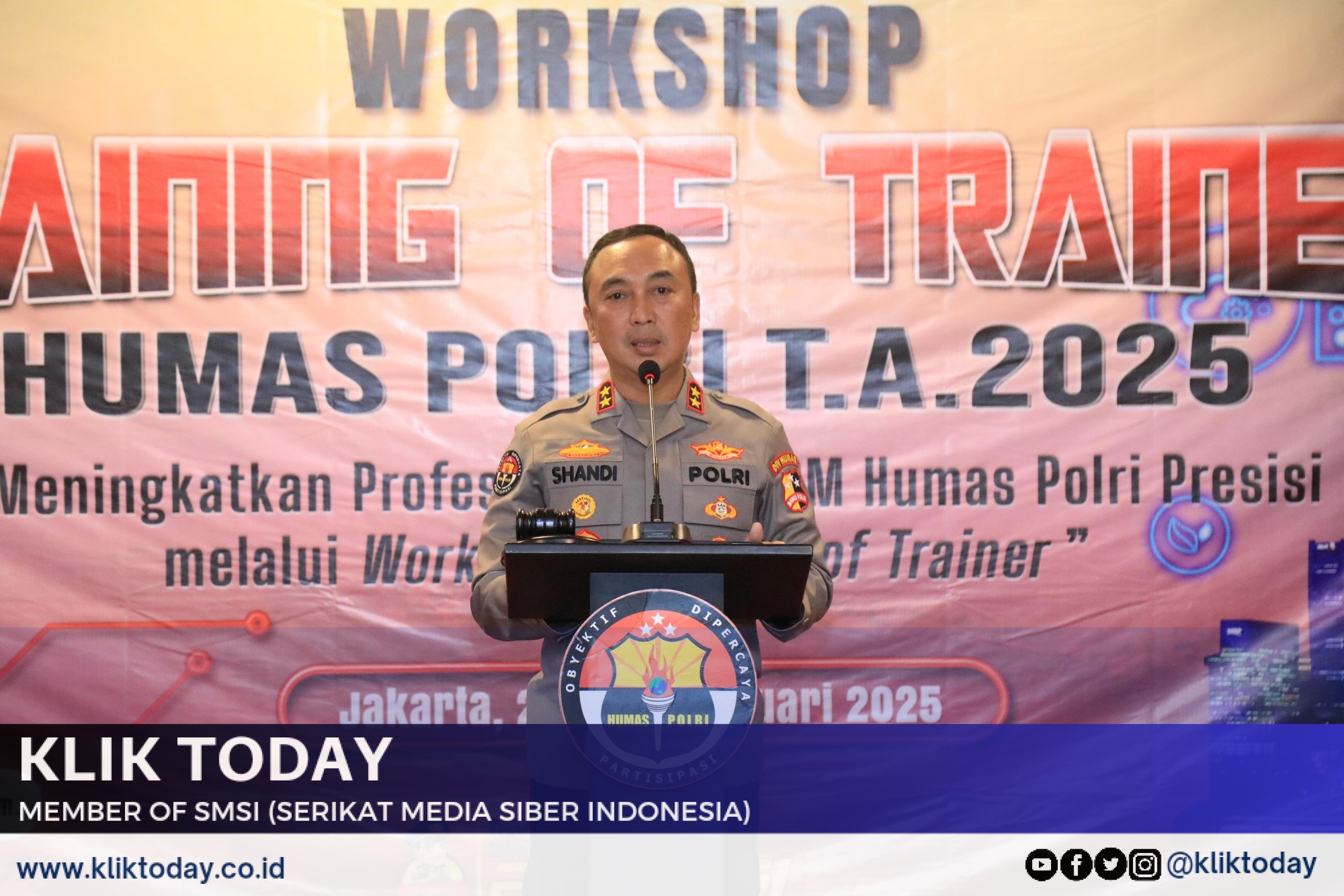 Jakarta. KLIKTODAY.CO.ID Kadiv Humas Polri Irjen. Pol. Sandi Nugroho membuka workshop training of trainer Polri Tahun Anggaran 2025. Workshop tersebut diikuti oleh 112 peserta yang tidak hanya personel Mabes Polri, tetapi juga polda jajaran.
