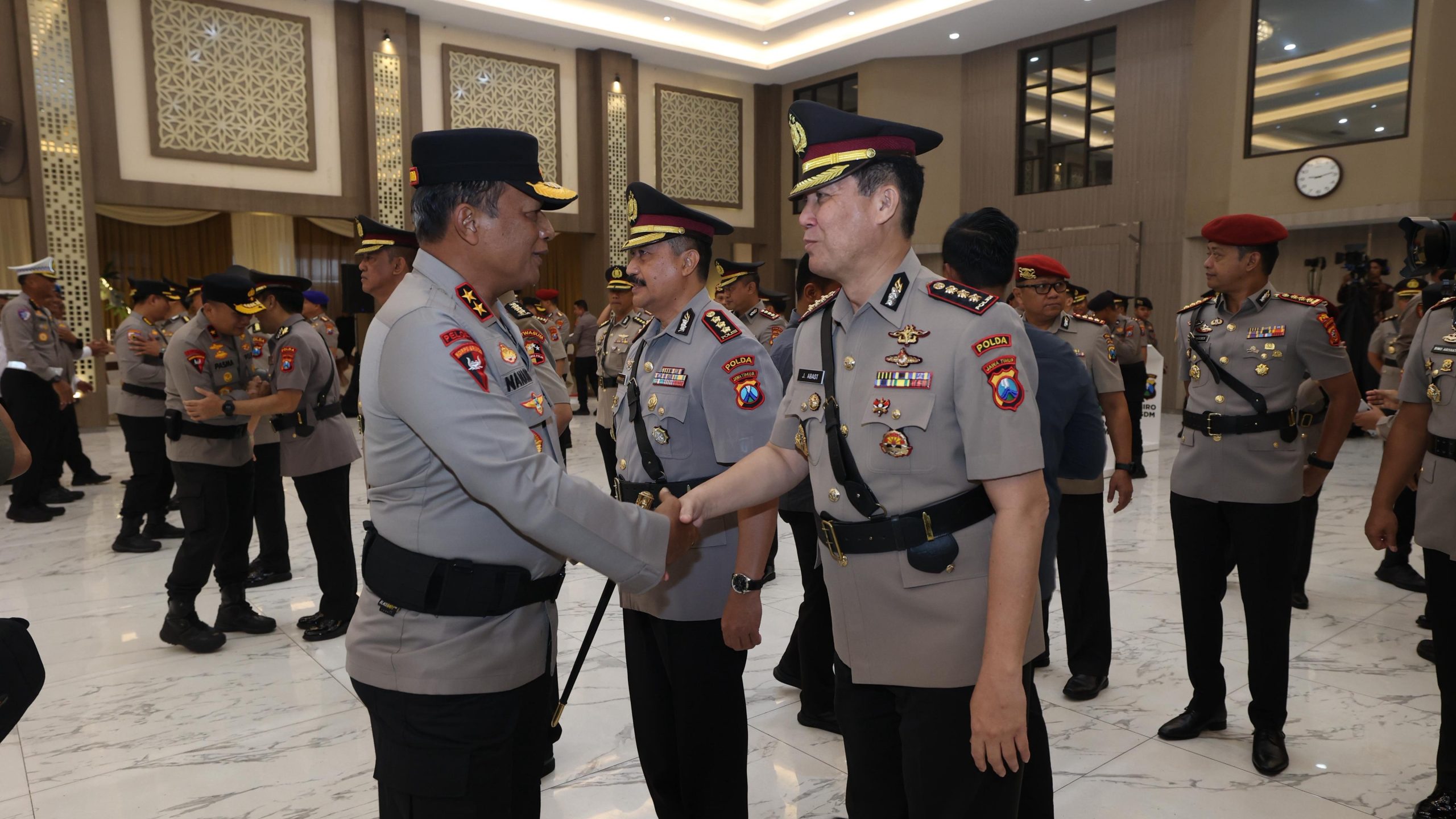 Surabaya, KLIKTODAY.CO.ID – Polda Jawa Timur menggelar upacara serah terima jabatan (sertijab) pejabat utama (PJU) dan sejumlah Kapolres jajaran. Kegiatan tersebut berlangsung di Gedung Mahameru Mapolda Jatim, Jalan Ahmad Yani, Surabaya. , Senin (12/1/2026).
