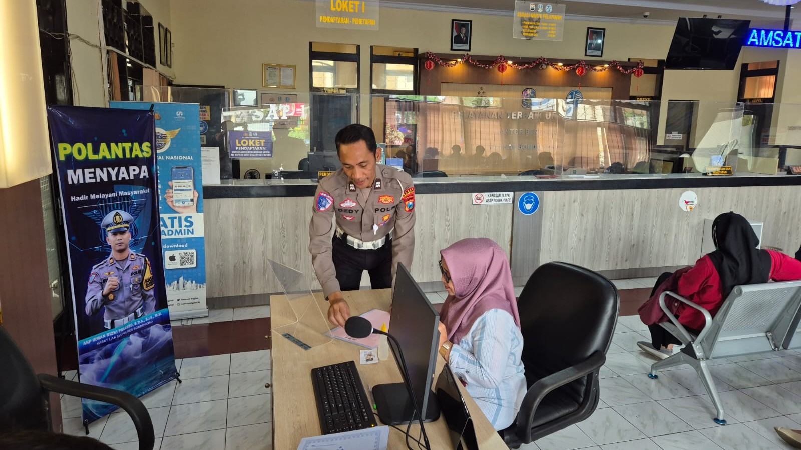 Aiptu Dedy Setio, Baur STNK Samsat Bondowoso mengatakan, petugas di kantor Samsat secara aktif menyambut, mengarahkan, memberikan informasi, menerima berkas, serta membantu proses awal administrasi sebelum pemohon menuju loket-loket pelayanan terkait.