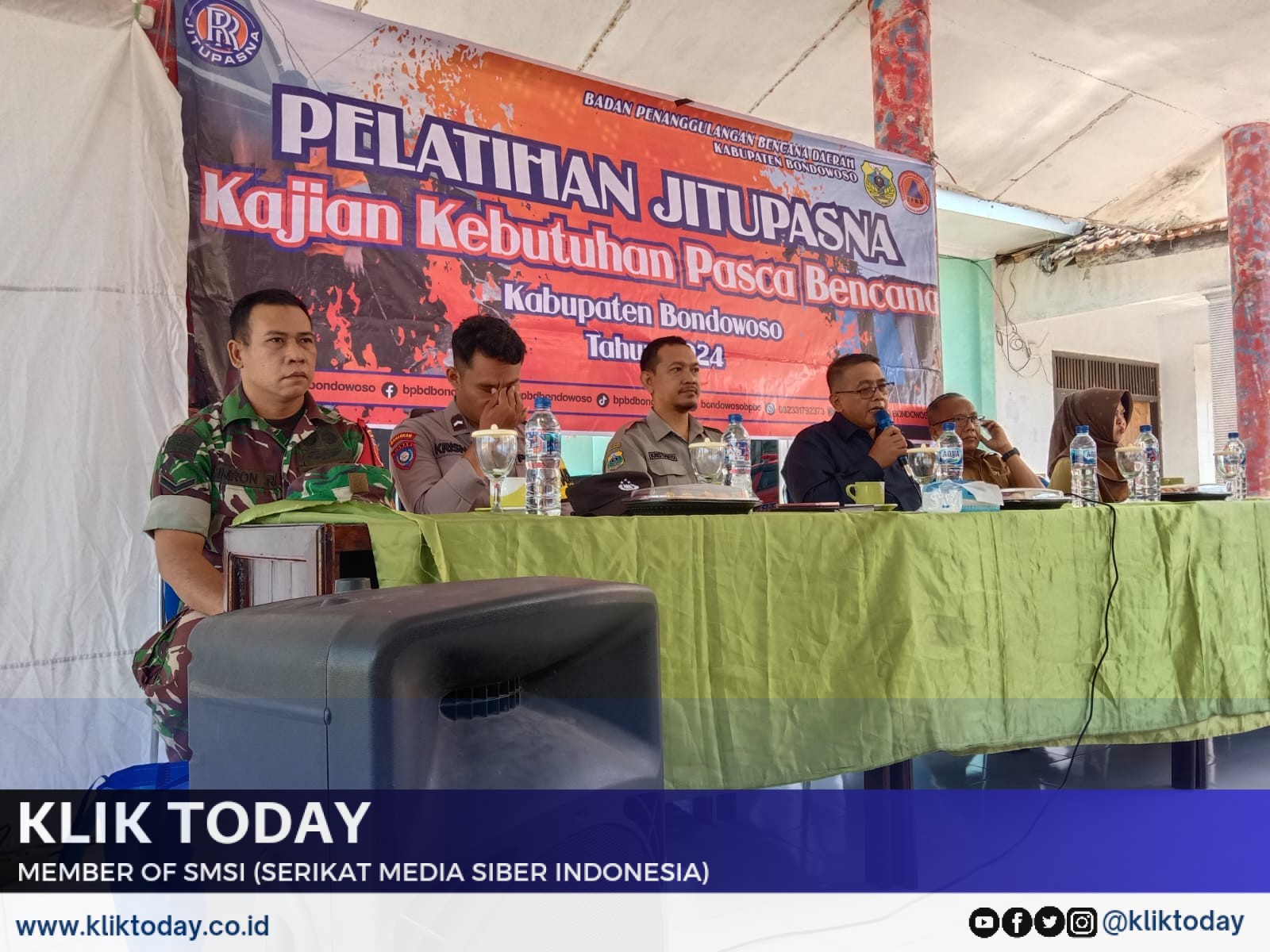 Bondowoso, KLIKTODAY.CO.ID – Babinsa Desa Mengok, Serda Imron Rosidi, dari Koramil 0822/09 Pujer, turut berperan penting dalam pelaksanaan pelatihan Jitupasna (Kajian Kebutuhan Pasca Bencana) di Balai Desa Mengok, Kecamatan Pujer, Kabupaten Bondowoso. Kegiatan ini merupakan langkah sigap dalam mempersiapkan rencana penanganan serta kebutuhan logistik dan anggaran pasca bencana di wilayah tersebut.
