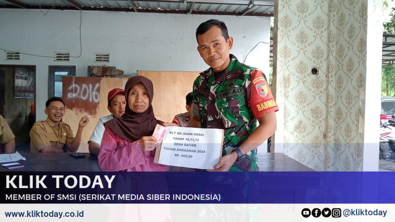 Bondowoso, KLIKTODAY.CO.ID – Babinsa Desa Gayam, Serda Suwandi, kembali menunjukkan dedikasinya dalam melayani masyarakat. Ia mendampingi penyaluran Bantuan Langsung Tunai (BLT) Dana Desa (DD) untuk periode Oktober, November, dan Desember 2024 di Balai Desa Gayam, Kecamatan Botolinggo, Kabupaten Bondowoso. Senin (16/12)