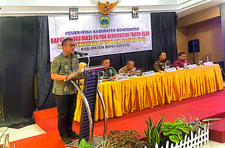 Hal tersebut diungkap oleh Kepala DPKP Bondowoso, Hendrik Widotono, saat menyampaikan laporan di Rakor pupuk bersubsidi tahun 2024 oleh Komisi Pengawasan Pupuk dan Pestisida (KP3), di Aula Hotel Grand Padis, Kamis (18/1/2024).