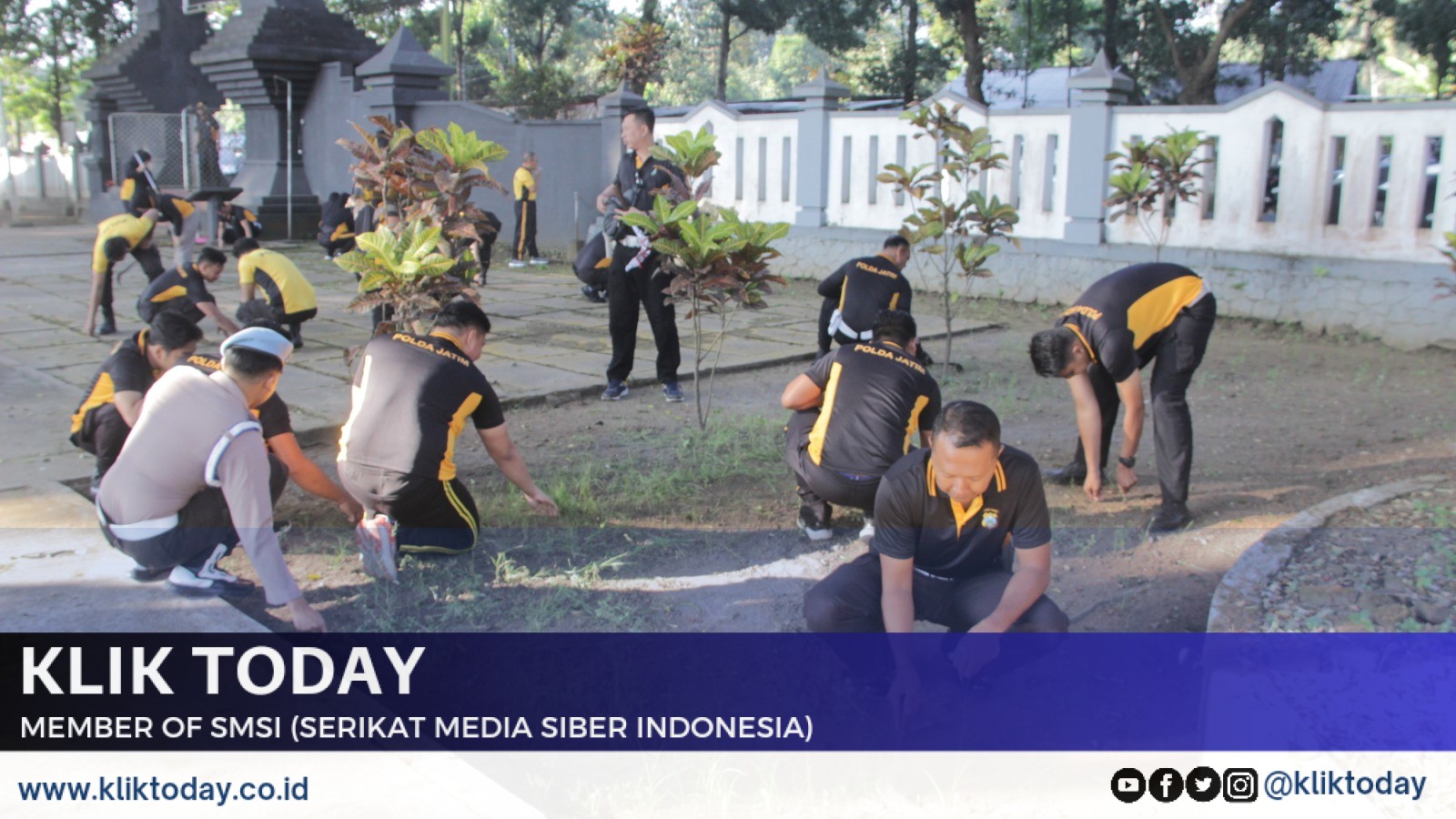 Seluruh anggota Polres Bondowoso turut serta dalam kegiatan bergotong-royong untuk membersihkan dan merawat area sekitar taman makam Pahlawan.